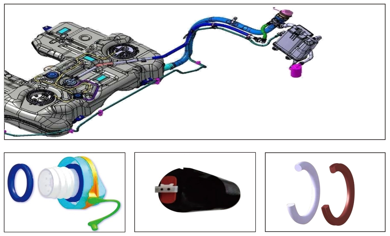 주로 연료 라인 퀵 커넥터 O링, ICV 밸브 씰, GVV 밸브 씰, FLVVF 씰, CFLVV 밸브 씰, 연료 벤트 라인용 단방향 밸브 다이어프램, 단일 및 이중 방향 밸브 다이어프램, 벤투리 밸브 다이어프램에 사용됩니다.